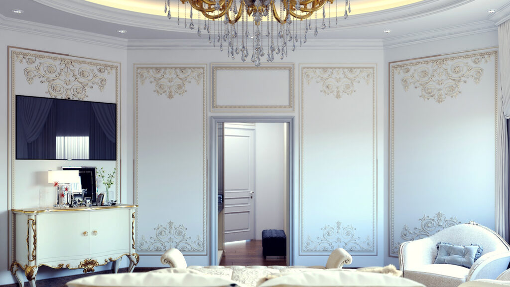 Privat Residences is located on Jeddah . Master bedroom design in Neo classic style has divine and serene character . This style is the kind of style that look’s like a luxury place . made to give your home touch of richness .